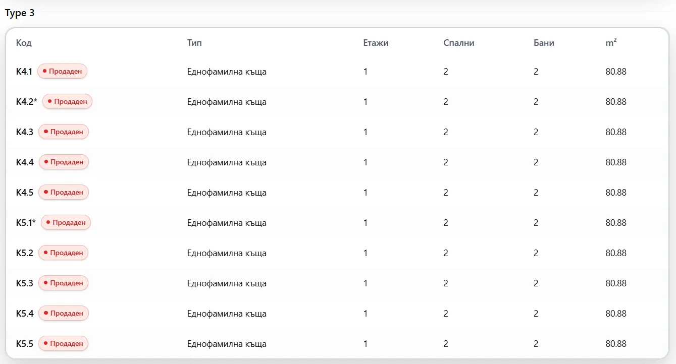 10 къщи с площ 80,88 кв.м.