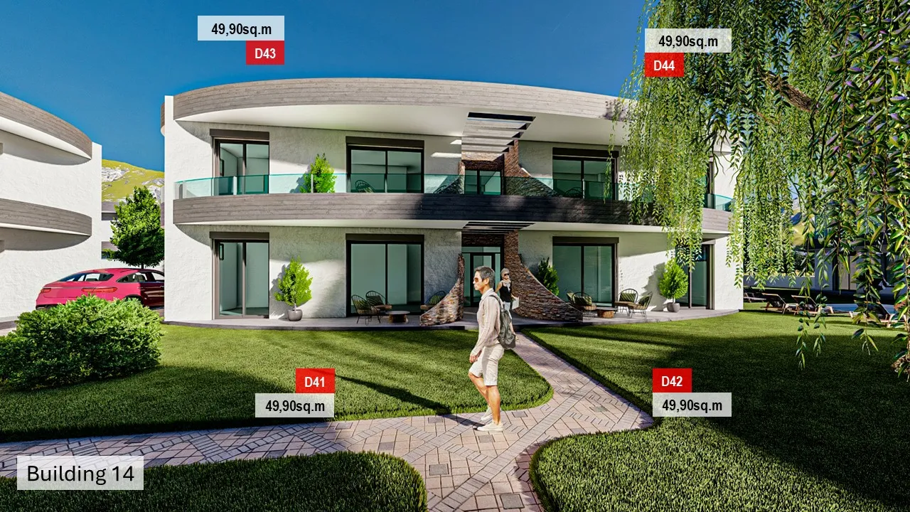 14 Апартамента на партерен етаж от 49,90 кв.м до 57,94 кв.м