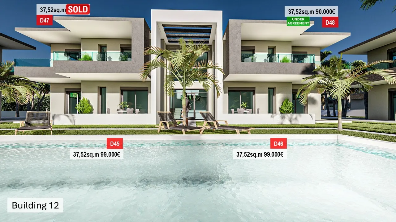 12 Апартамента на партерен етаж от 36,95 кв.м до 37,52 кв.м