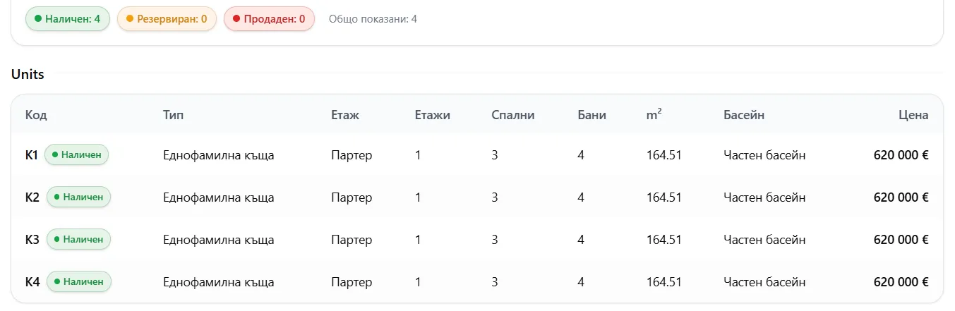 Разпределение и заетост на имотите до момента