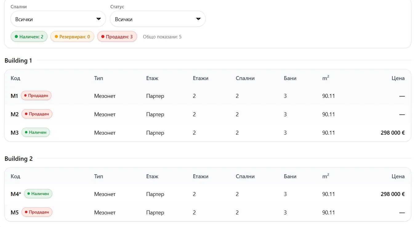 Разпределение и заетост на имотите до момента
