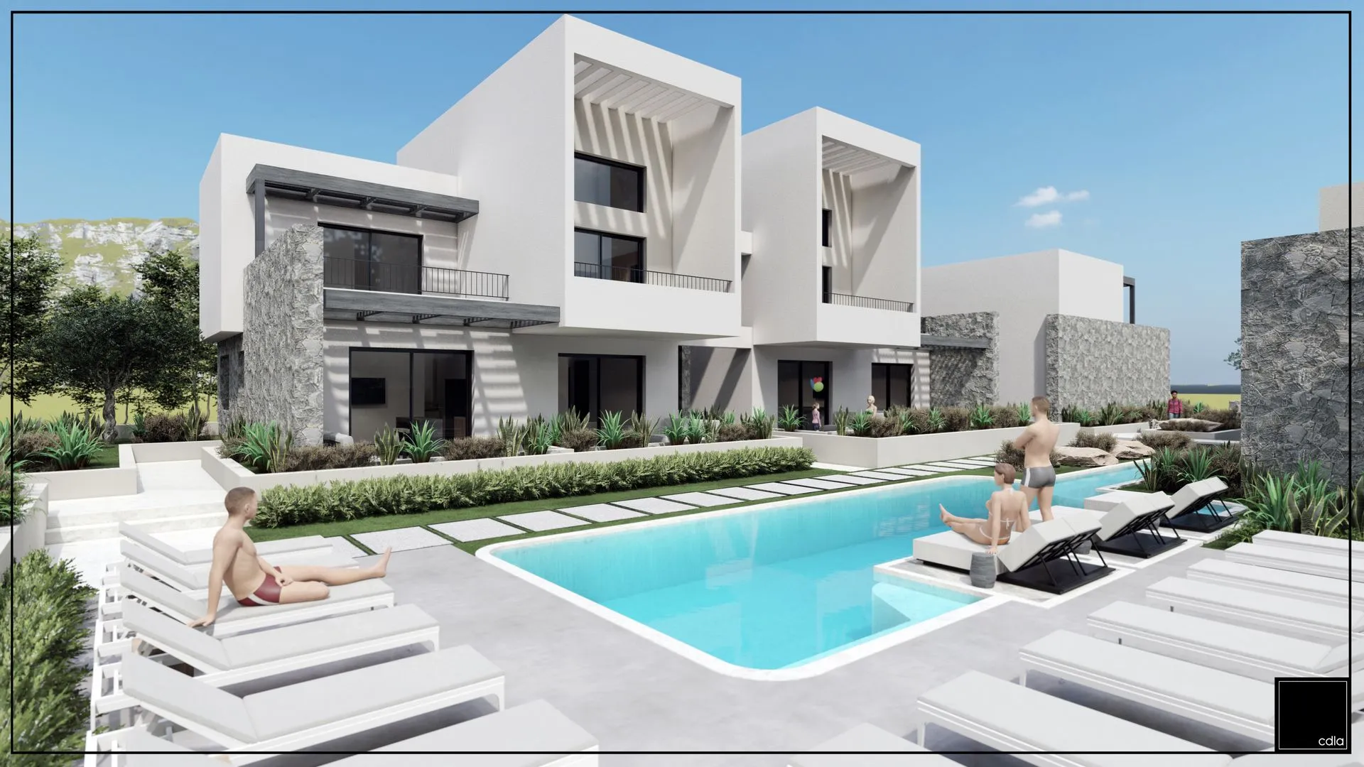 Къщите разполагат с просторни вътрешни помещения, веранди с изглед към градината или морето, а архитектурата им следва философията на хармонията с природната среда.