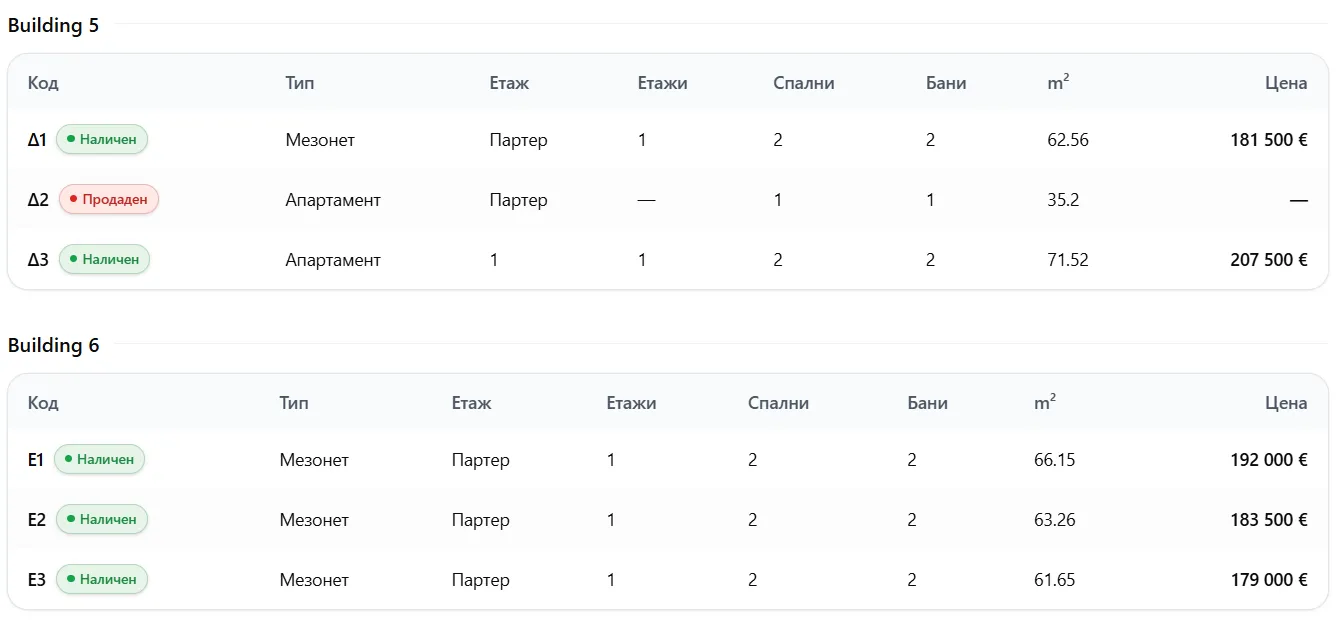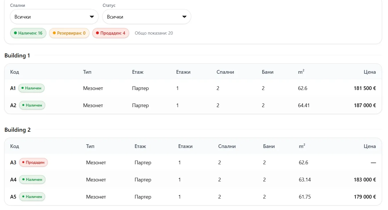 Разпределение и заетост на имотите до момента