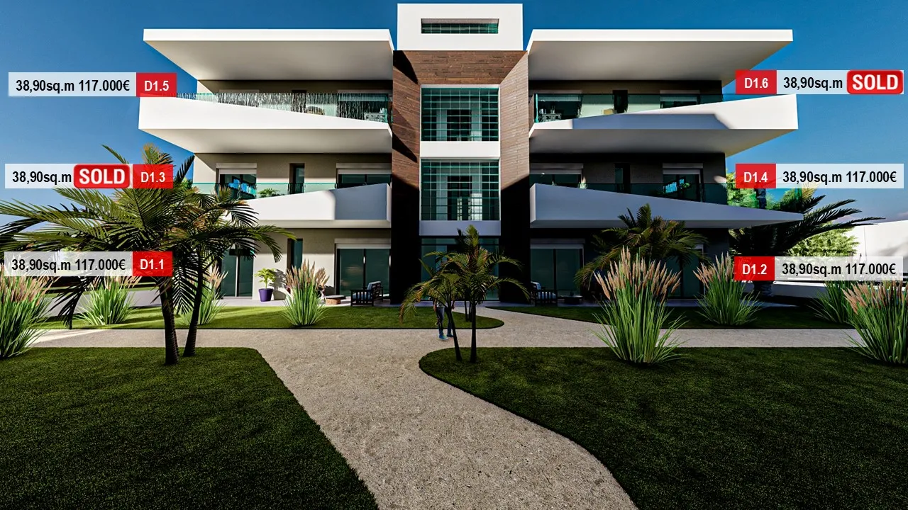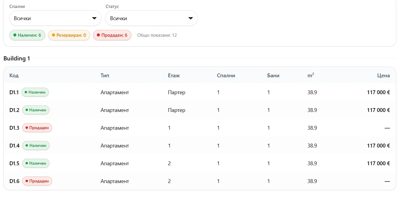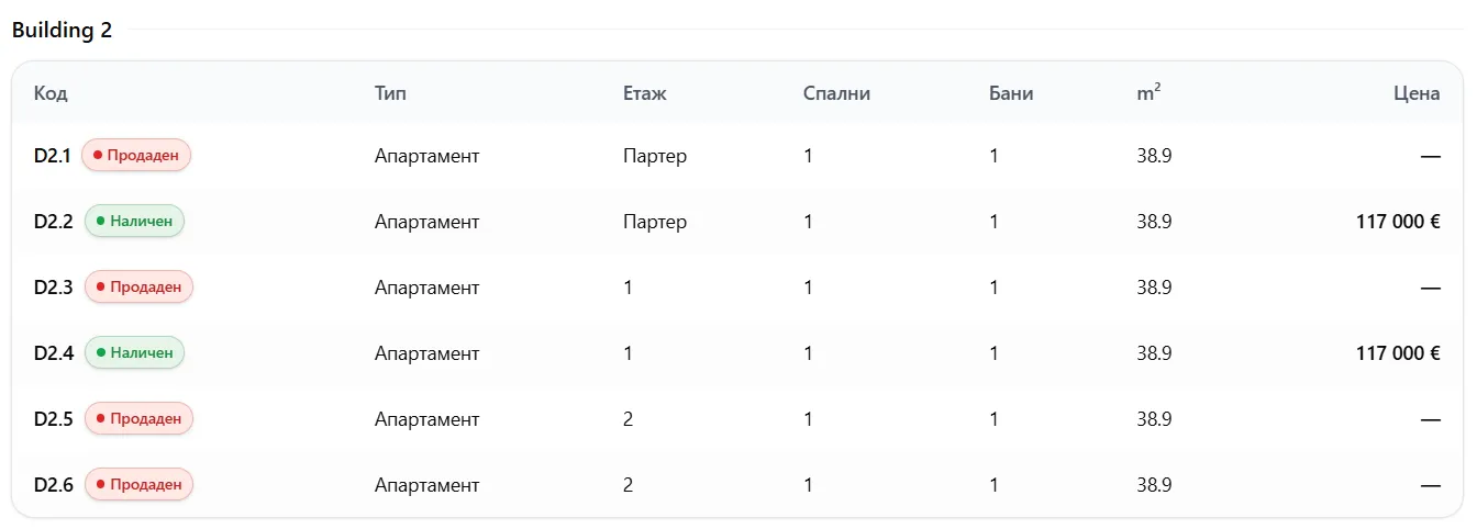 Имотите са наименовани с текст D4, D5, D8 и т.н;