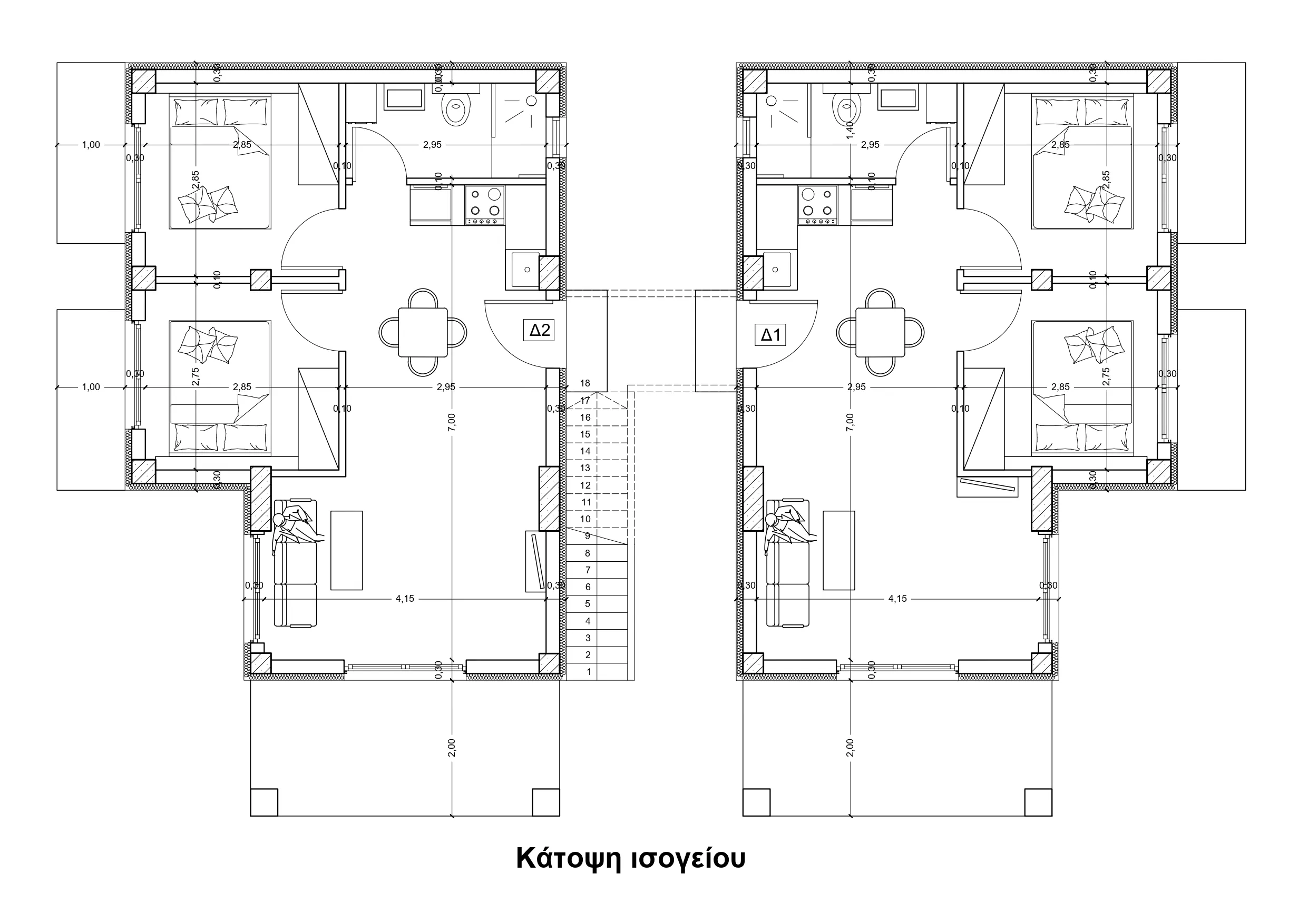 2 апартамента на партерен етаж с площ 54,25 кв.м