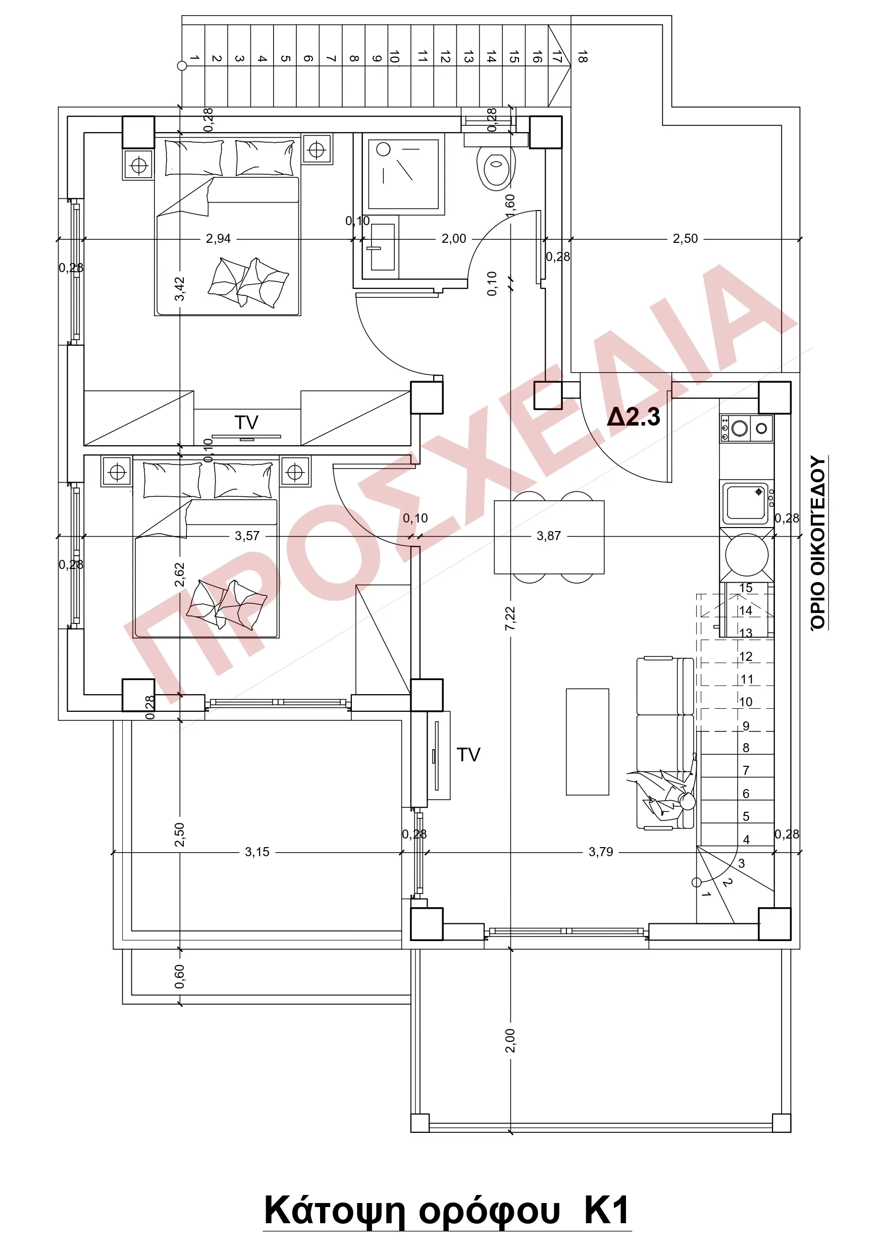 2 апартамента на етаж с таванско помещение, с площ 78,13 кв.м