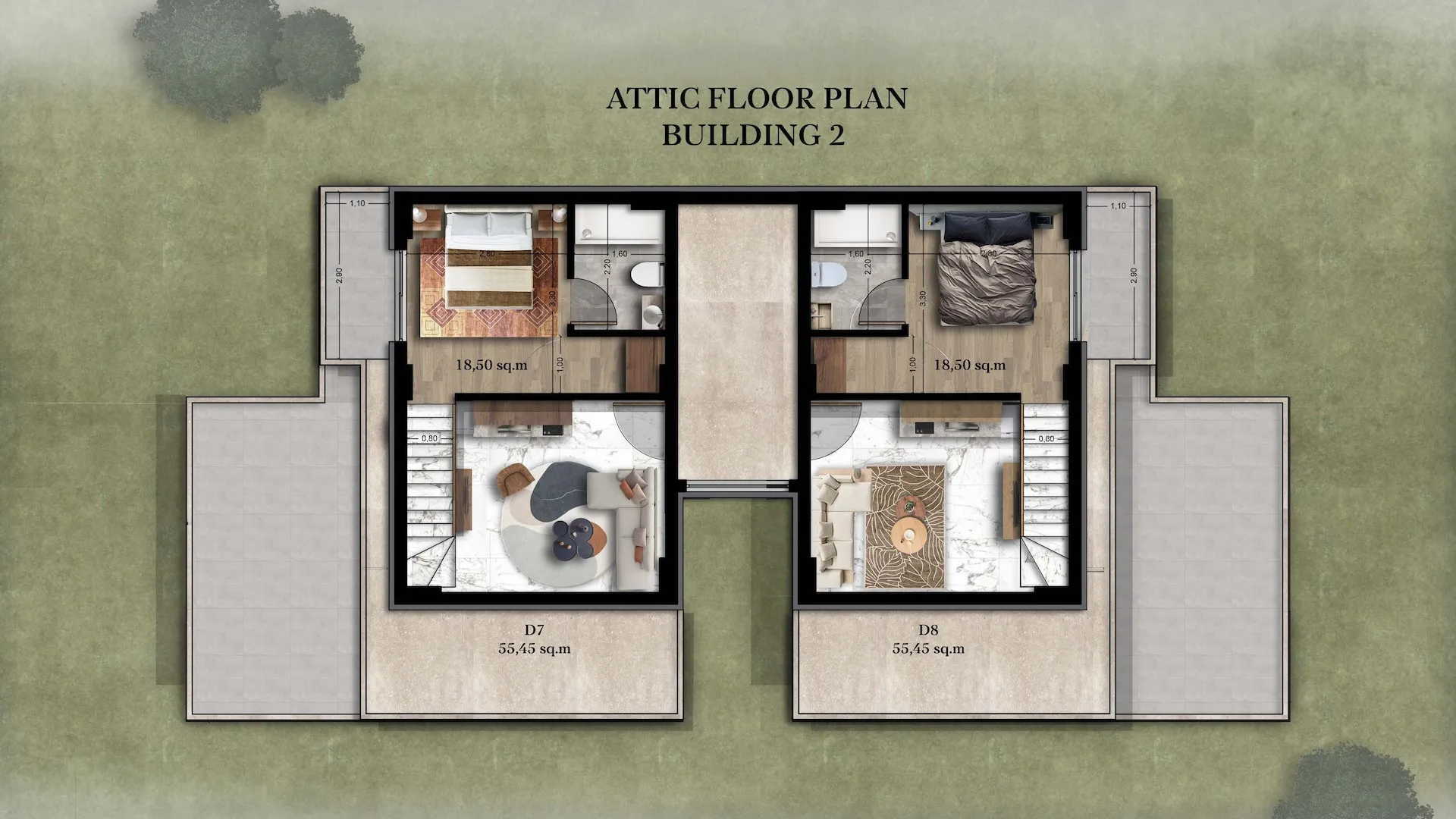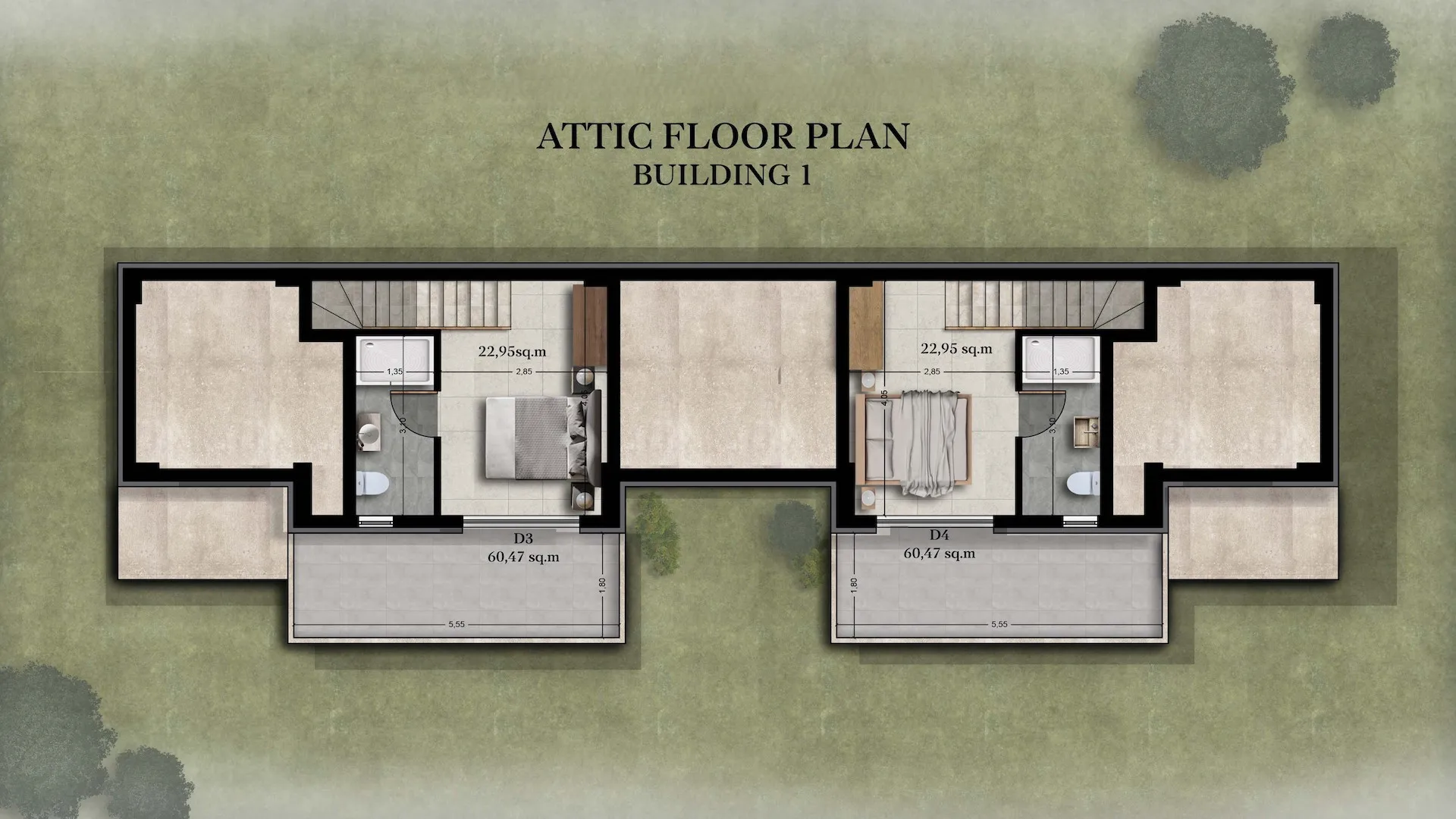 4 апартамента на етаж с таванско помещение от 61,12 кв.м до 67,60 кв.м