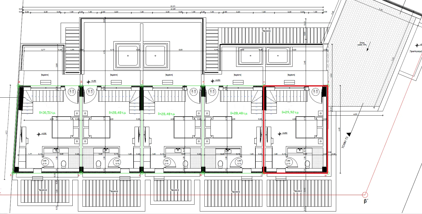 Състои се от 2 спални, кухня с хол, 2 бани.