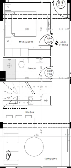 Състои се от 2 спални, кухня с хол, 2 бани.
