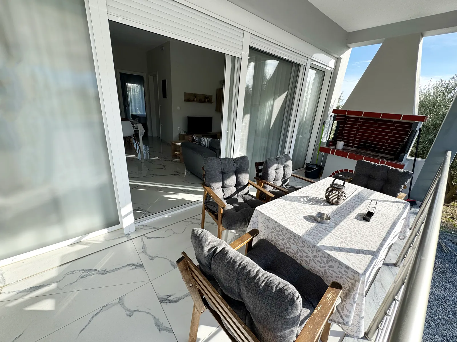 Имотът е построен през 2024 година и разполага с отопление чрез климатик, изглед към градски пейзаж, PVC дограма, бронирана врата, градина, обзаведен, електроуреди, сенници, двоен стъклопакет, соларен бойлер, BBQ.