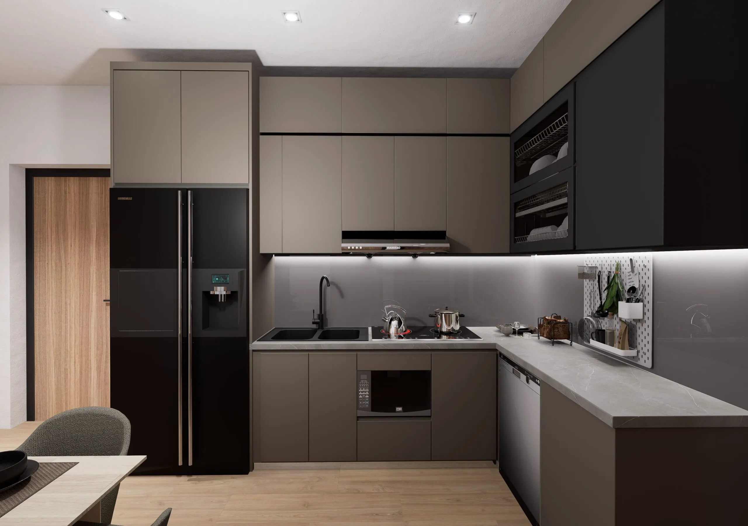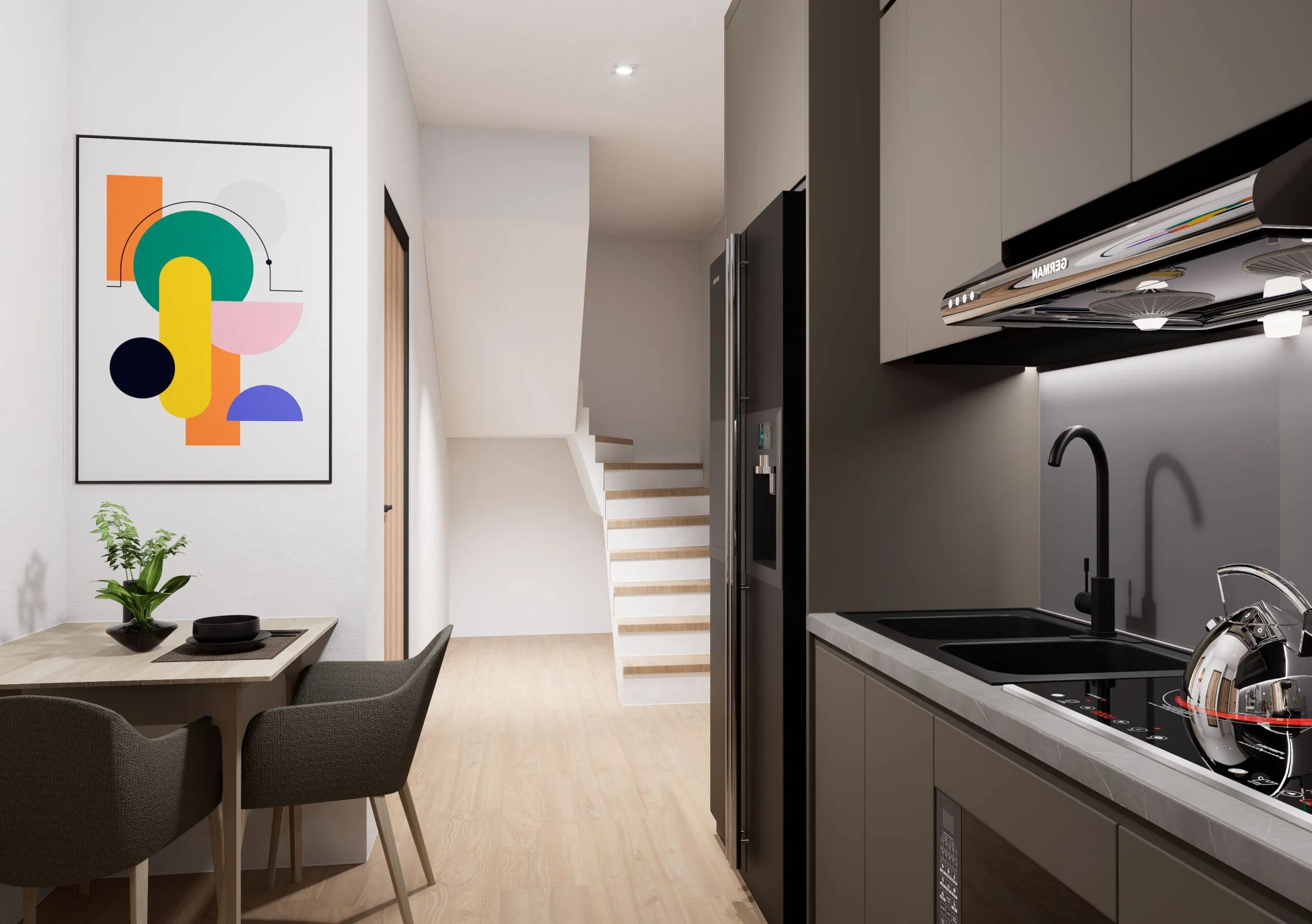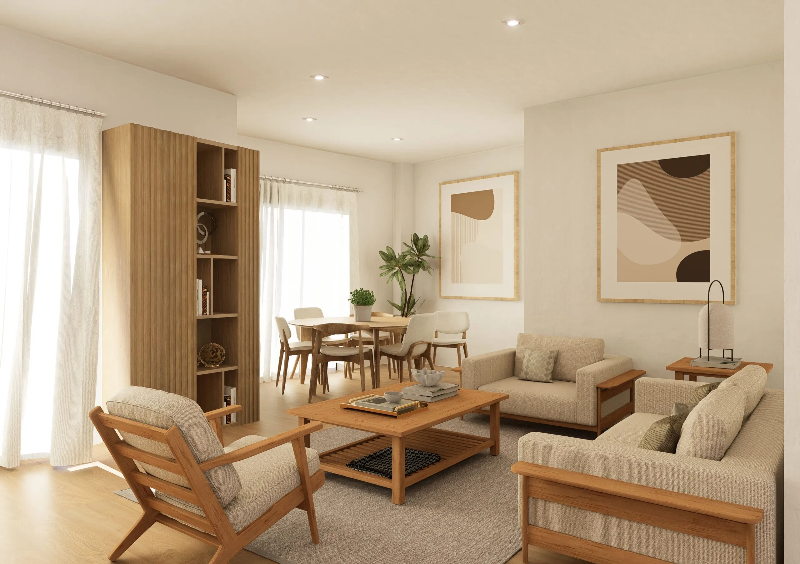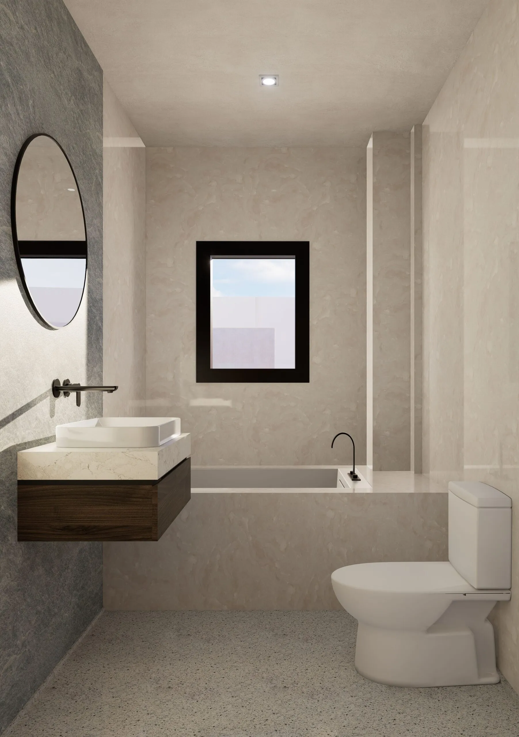 Състои се от 3 спални, кухня с хол, 2 бани.