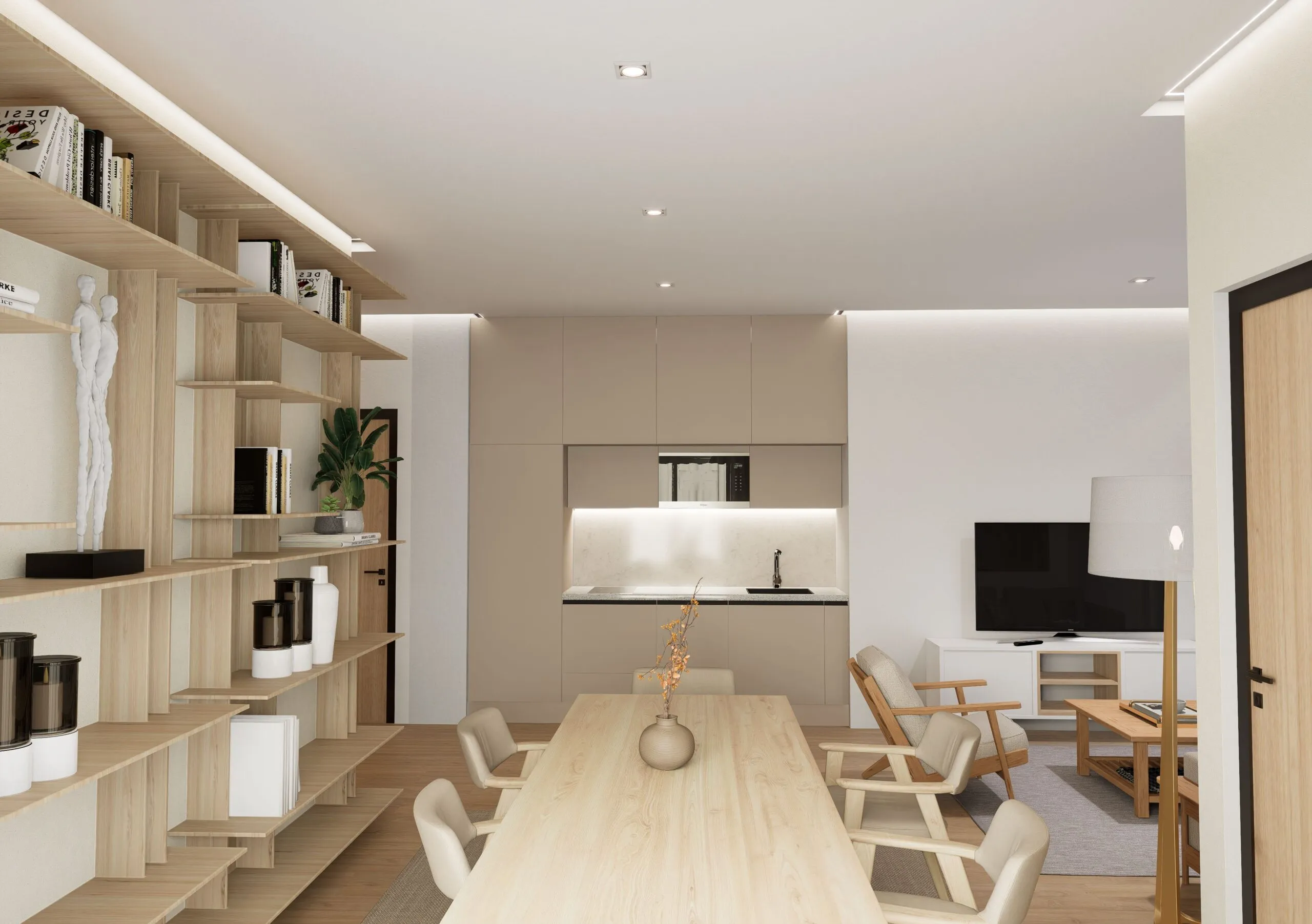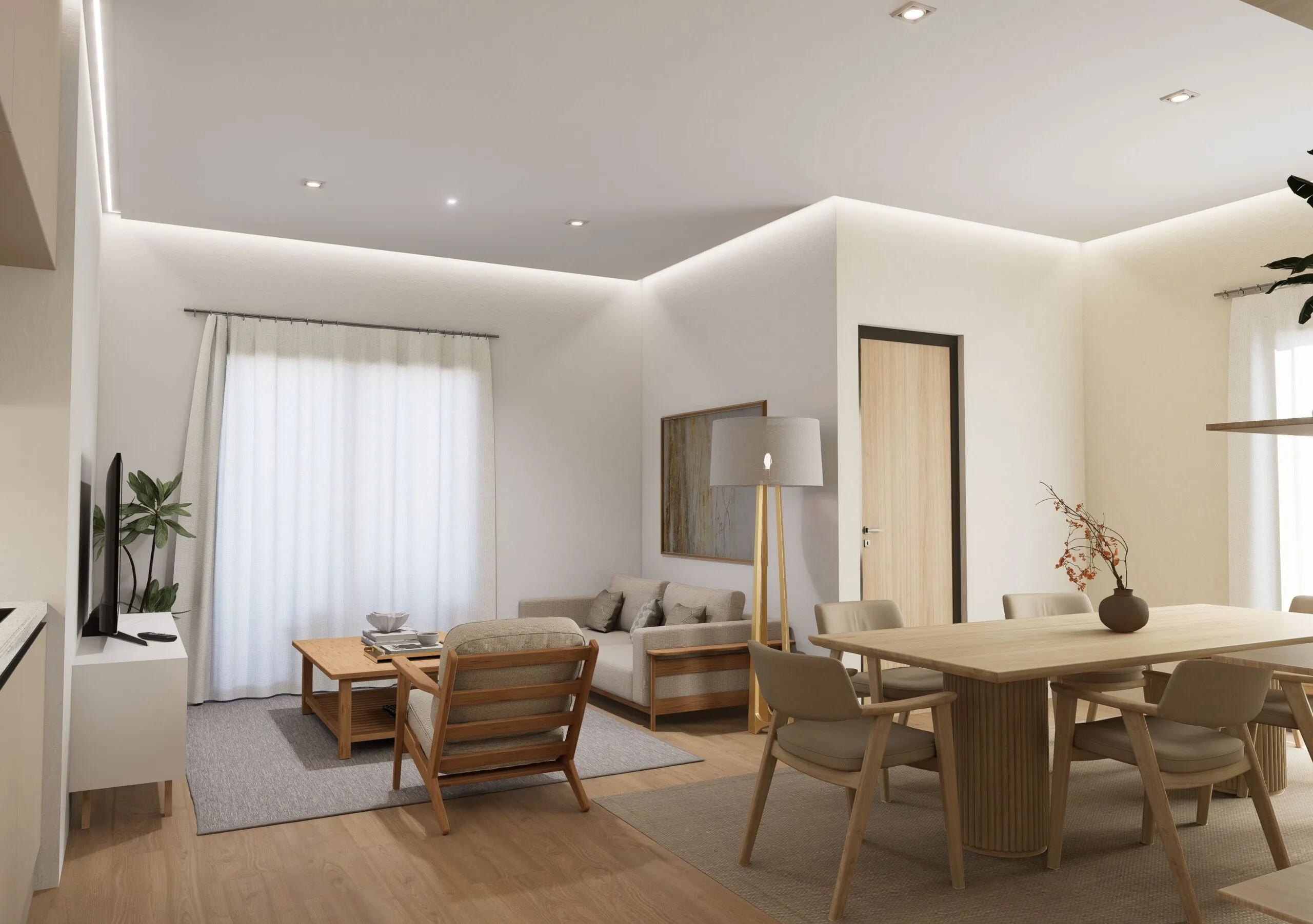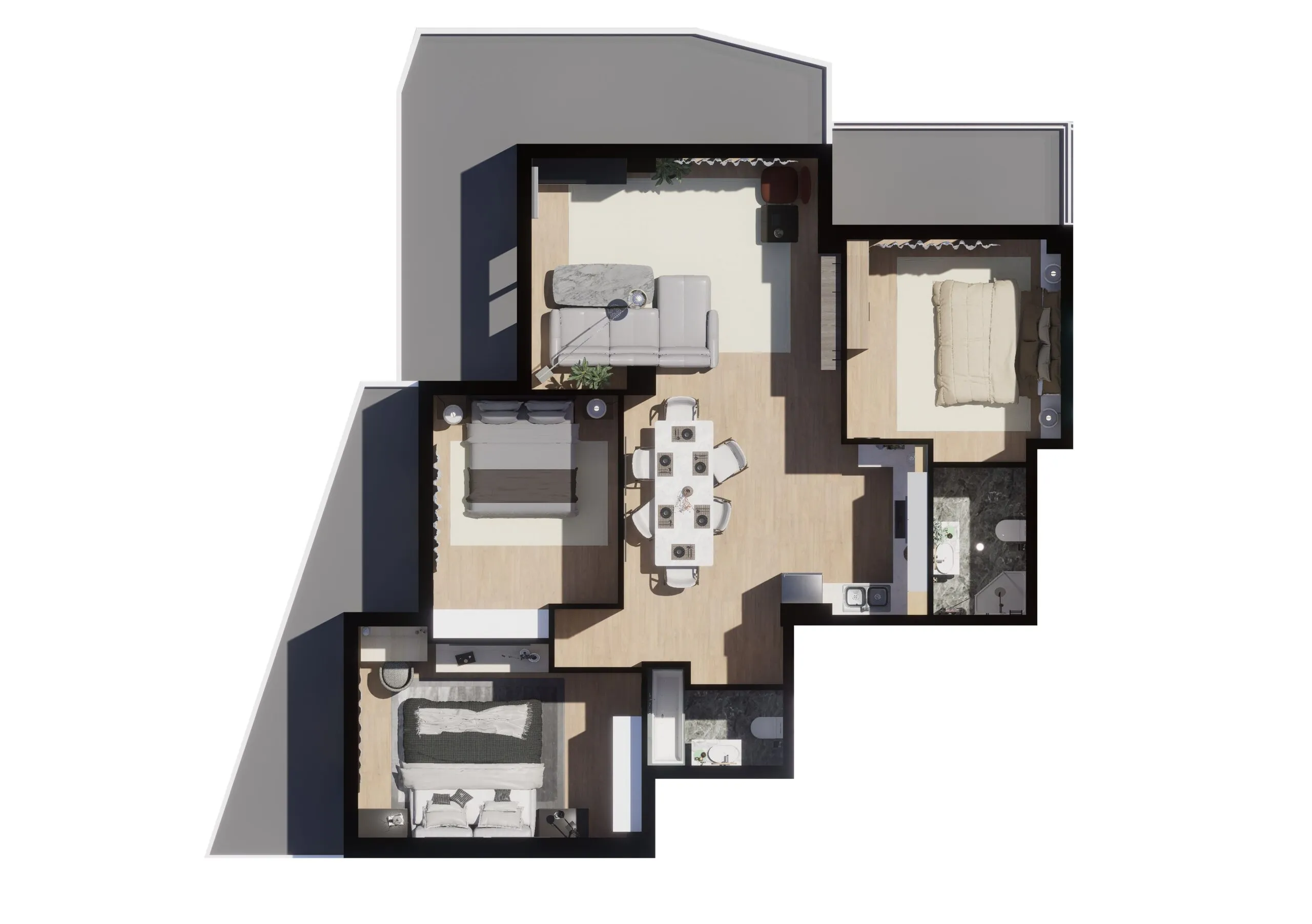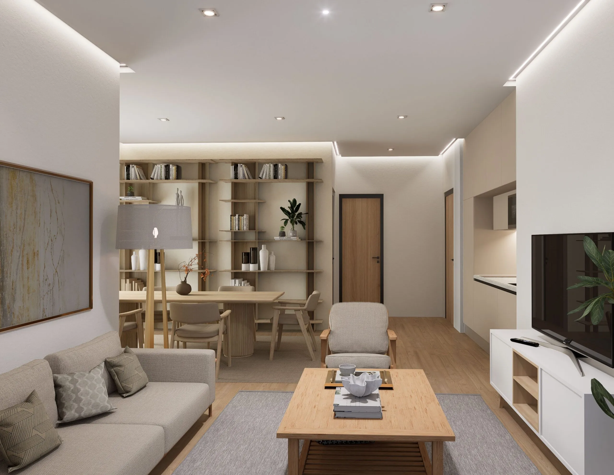 Състои се от 2 спални, кухня с хол, баня.