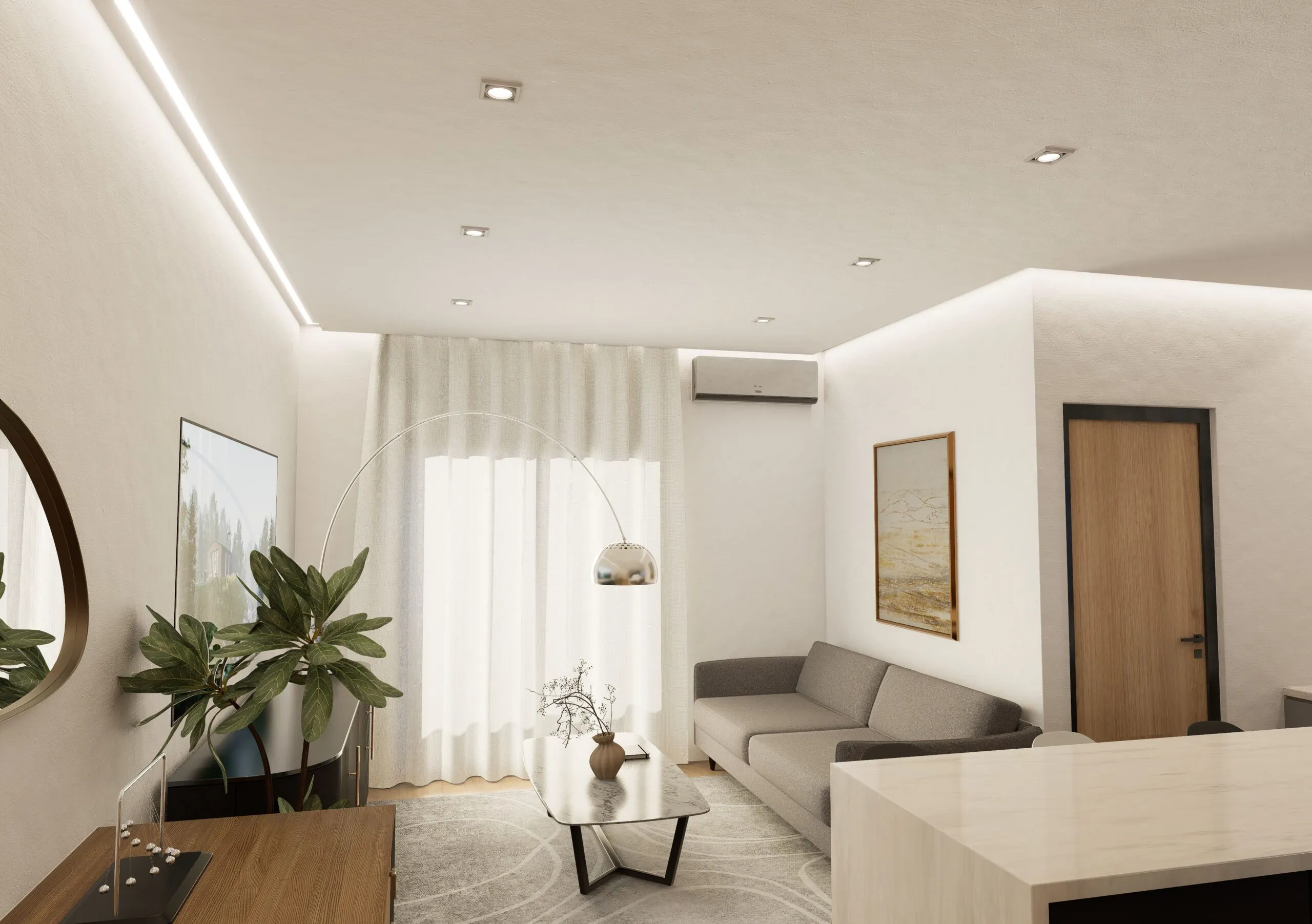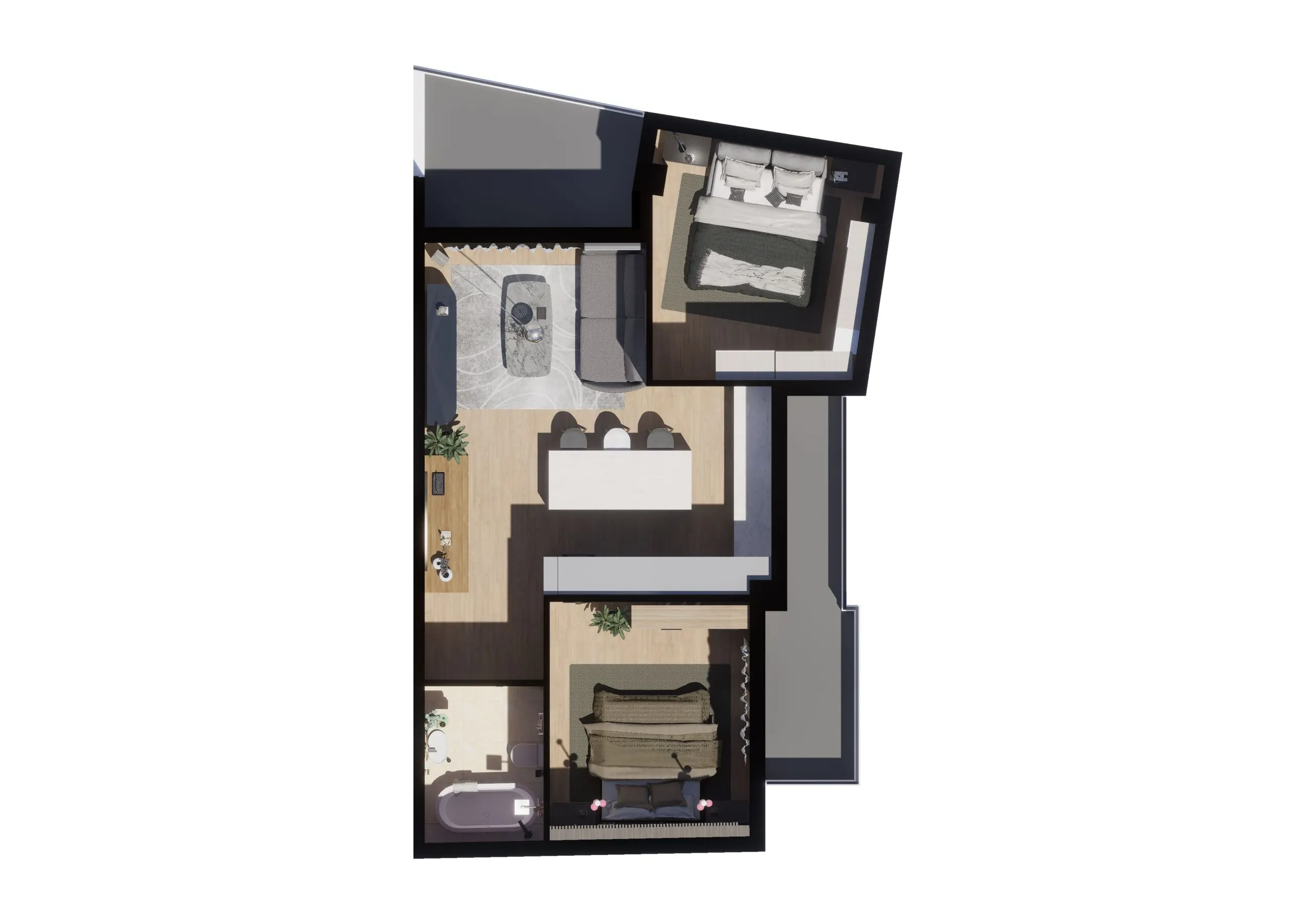 Състои се от 2 спални, кухня с хол, баня.