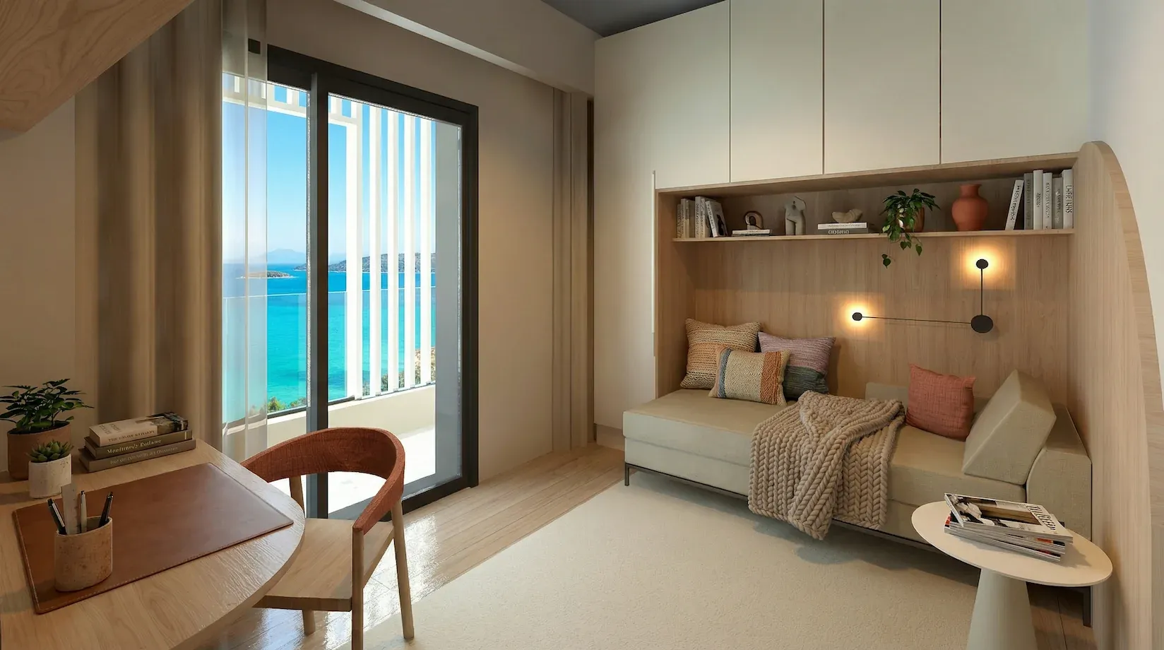 Разполага с отопление термопомпа, панорамна гледка и изглед към море, PVC дограма, врата с предпазна ключалка , асансьор, комарници и двоен стъклопакет.