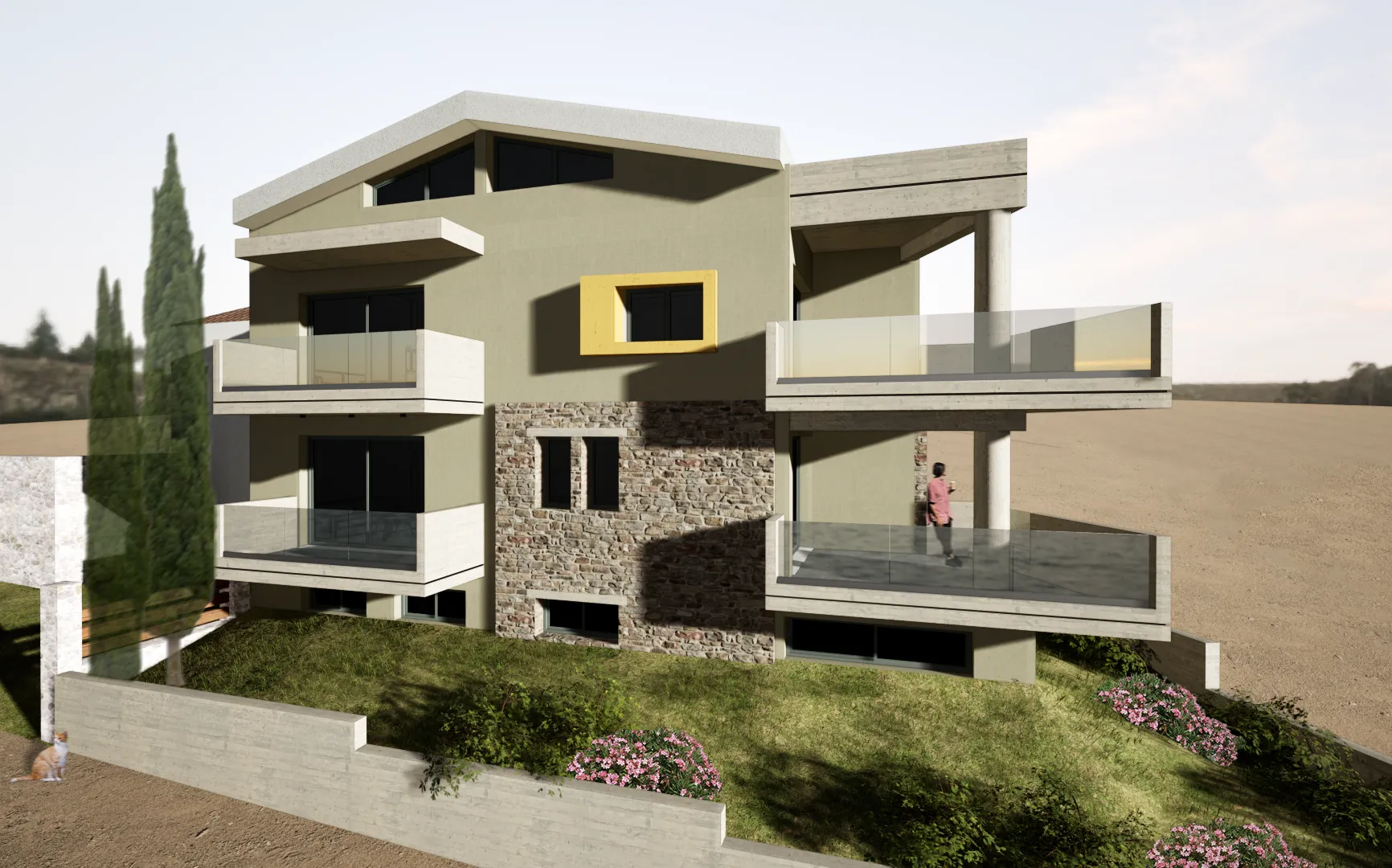Имотът е в процес на изграждане и разполага с отопление климатик, изглед към море, PVC дограма, врата с предпазна ключалка , асансьор, двоен стъклопакет, соларен бойлер и таванско помещение.