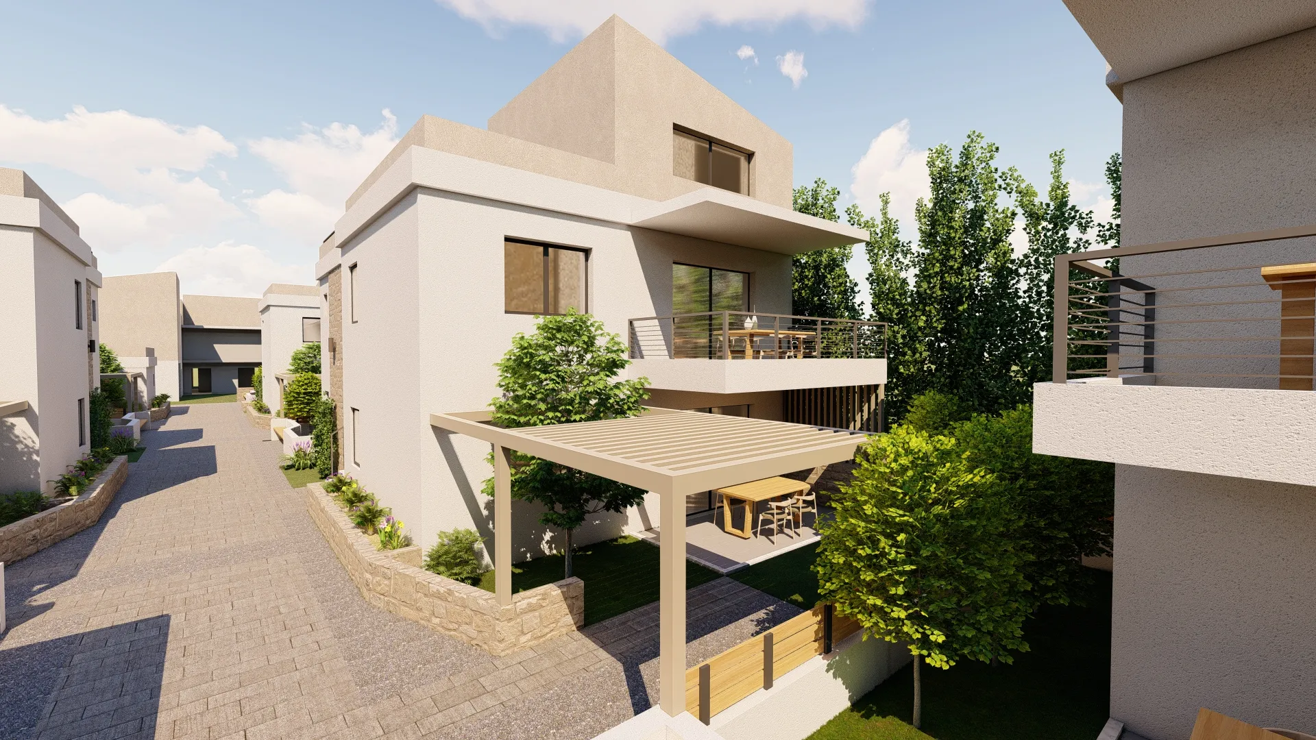 Имотът разполага с 2 спални, 2 бани, дворно пространство 129 кв.м и включено паркомясто.